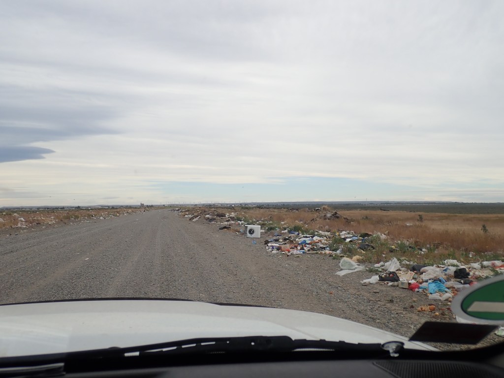 Auf dem Weg zum Cabo Raso kamen wir durch Rawson. Schon ca. 2 km vor dem Ort begann der Wahnsinn. Rechts und links der Piste, nur Müll. Die Weiden ringsum waren mit Plastik übersät. Vom Hausmüll über Kühlschränken und Autowracks, hier war alles zu finden. Vom Geruch wollen wir hier gar nicht reden.